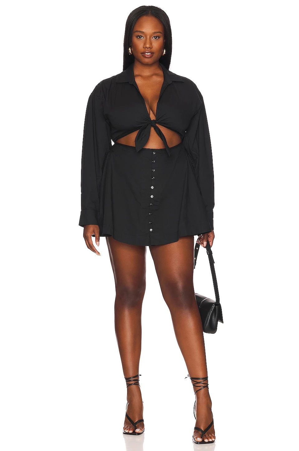 - Bust tie closure with waist cut-out design
