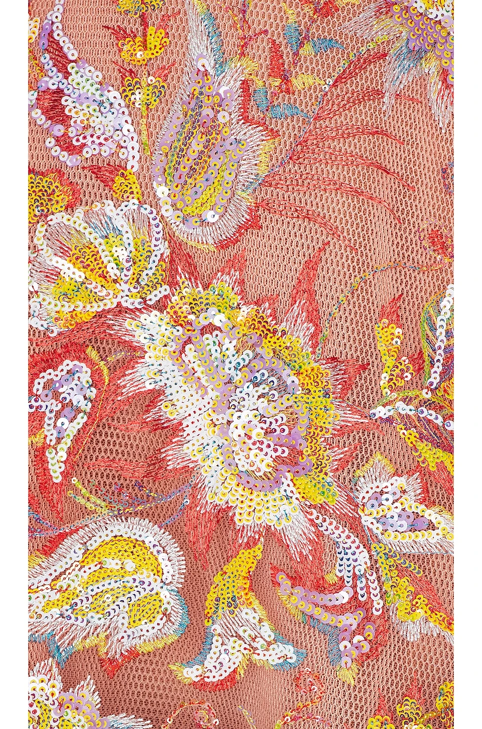 Bodice cut-out - Sheer mesh fabric overlay with multi color stitching and sequin embellishments throughout