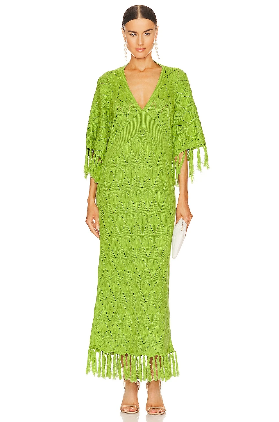 - Pointelle knit fabric with fringe trim